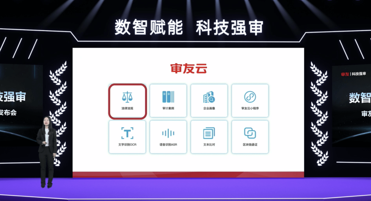 為了使參會人員可以更加直觀感受到“審友A7-數(shù)智化審計平臺”的高效與便捷,用友審計咨詢專家劉恩熙進行了線上“審友云場景演示觀摩”?!皩徲言啤睌?shù)智化云服務(wù),提供法規(guī)云、案例云、企業(yè)畫像、文字識別OCR、語音識別ASR、 區(qū)塊鏈函證云、智能文檔比對等新功能、新技術(shù),提高審計質(zhì)量和效率,使審計更加智能與便捷。